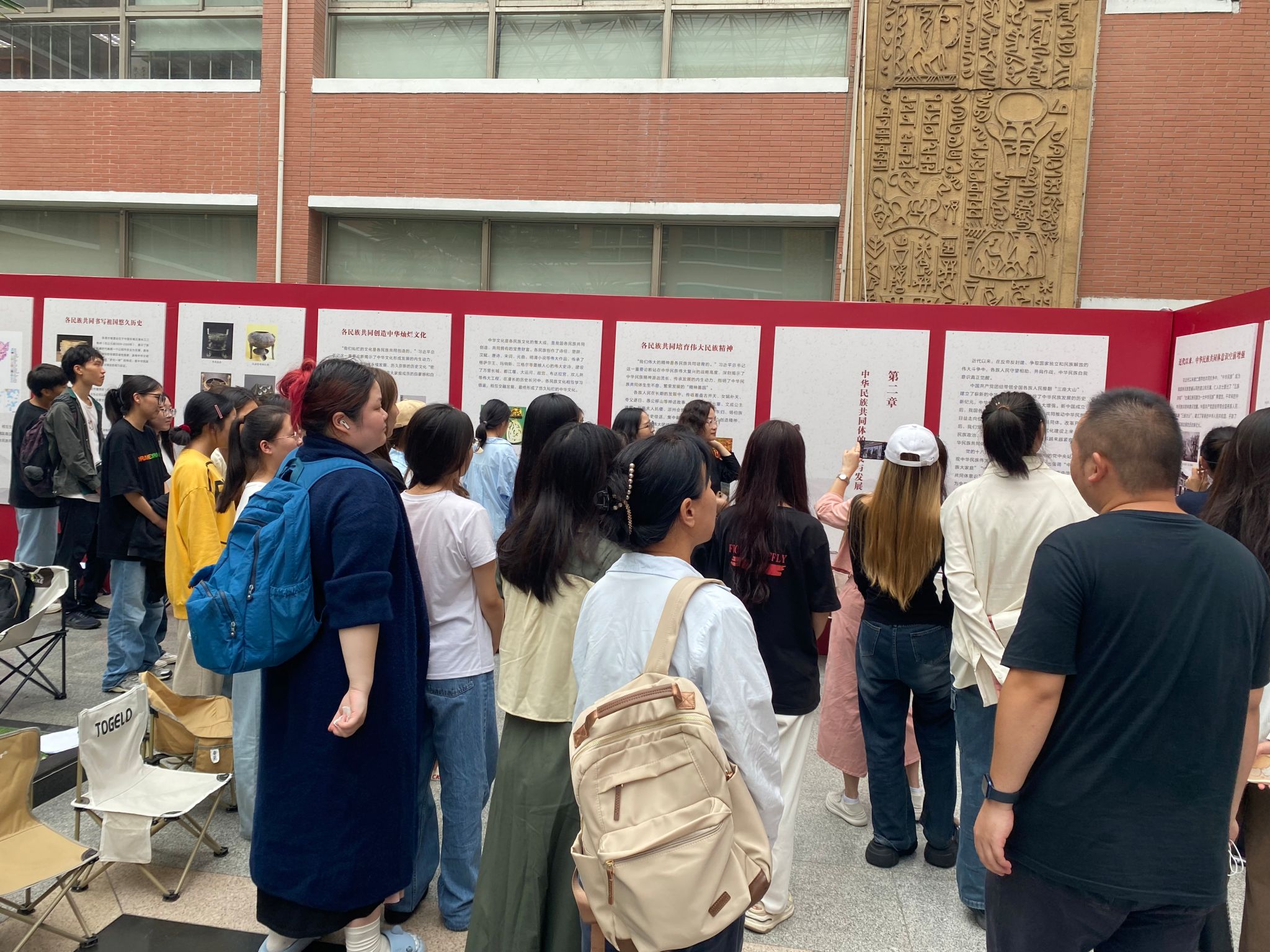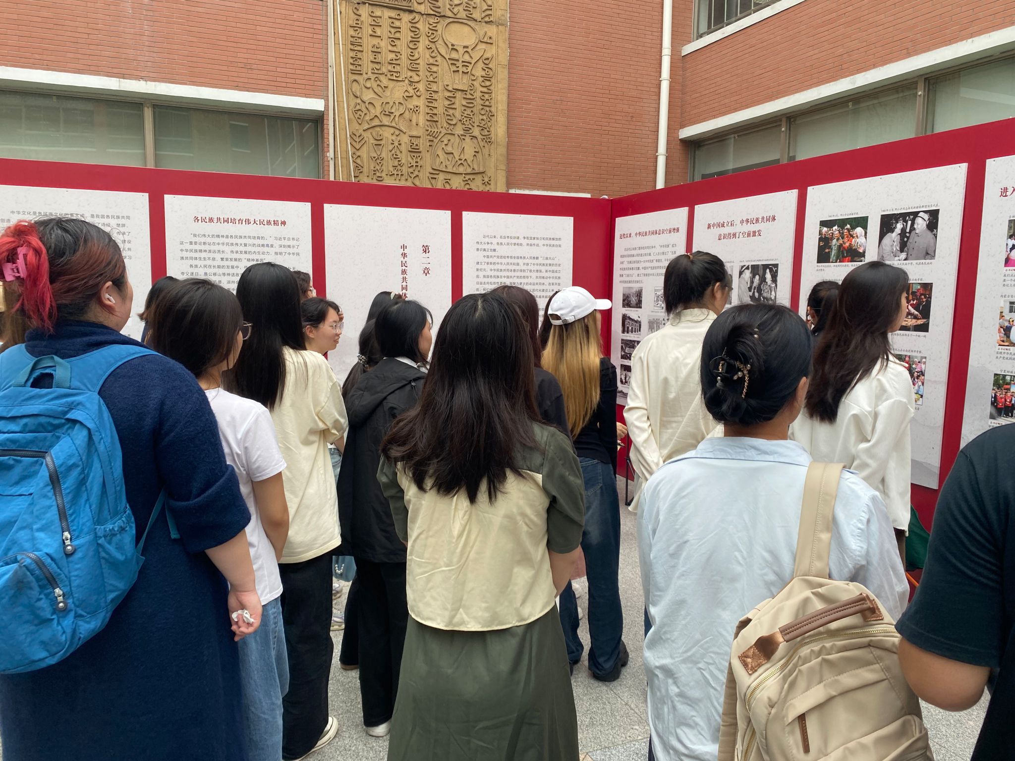 本次展览以丰富的图文资料和鲜活的实例为载体,深刻揭示了中华民族多元一体的历史渊源,以及各民族在漫长岁月中共同团结奋斗、携手并进、共同繁荣发展的壮丽篇章。师生们在讲解员的引领下,仔细聆听,认真观摩,仿佛穿越时空,亲历了那些关于团结、奋斗与梦想的动人故事。