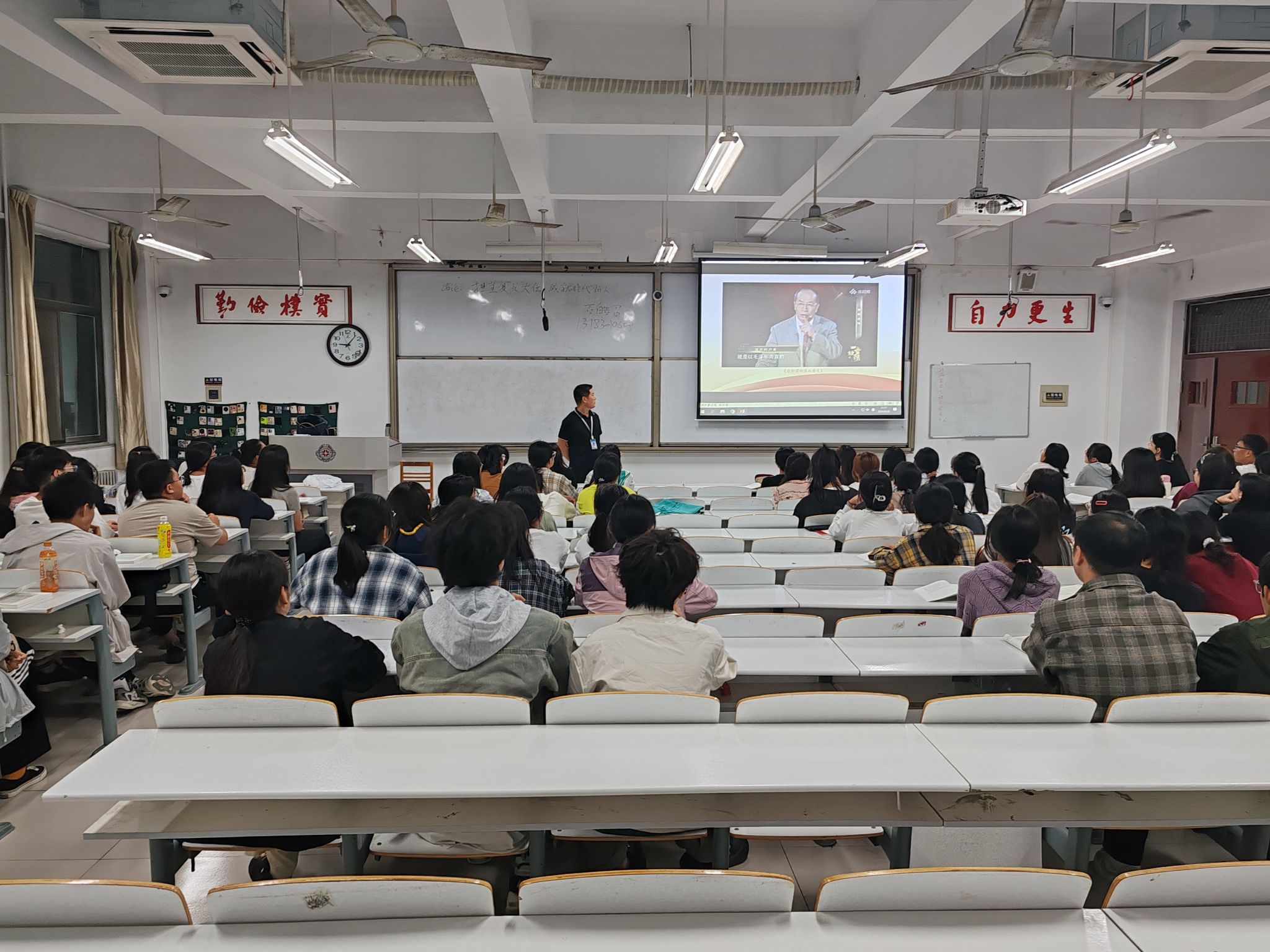 2024年9月26日晚,按照公司党委的统一工作部署,公司党委书记石皓召同志,在教学楼内为2024级英语本科三、四班的同学们带来了秋季学期的第一堂思政课——《弘扬伟大建党精神 做新时代先锋力量》。此次授课旨在深化员工对中国共产党历史的理解,激发其爱国情怀与奋斗精神,为新学期的学习生活奠定坚实的思想基础。