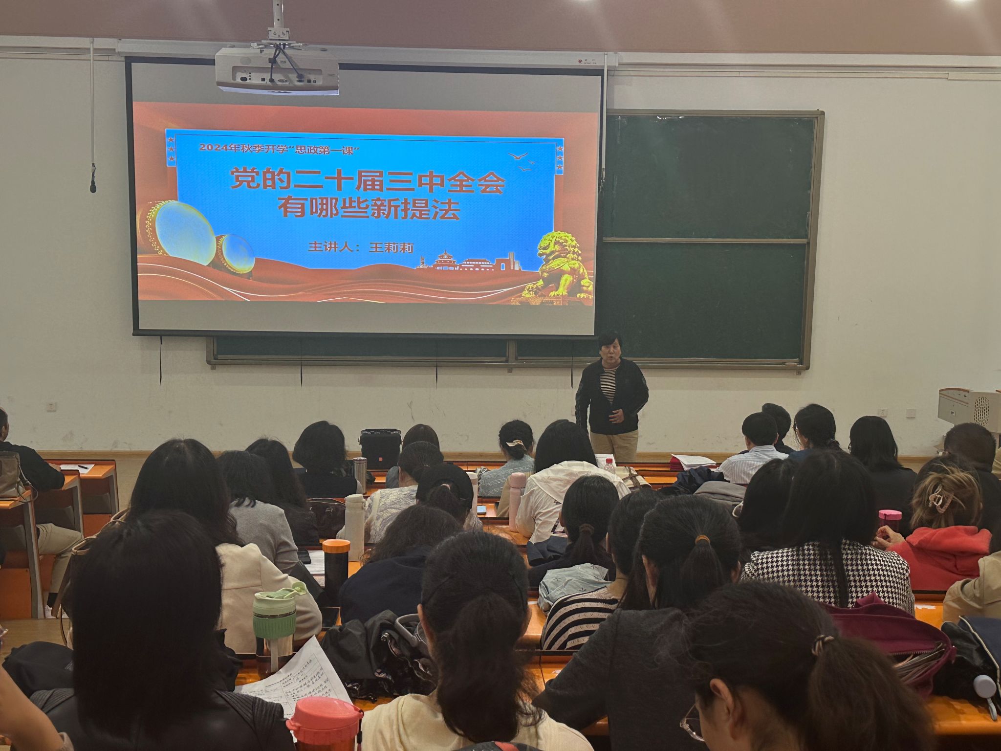 王莉莉经理以流利的语言和清晰的逻辑,概述了党的二十届三中全会的重要性和会议内容。她详细解读了全会提出的新理念、新战略和新举措,特别是在深化改革开放、推动高质量发展、加强社会治理、促进文化繁荣等方面的新提法,为师生们呈现了一幅新时代中国特色社会主义事业发展的宏伟蓝图。