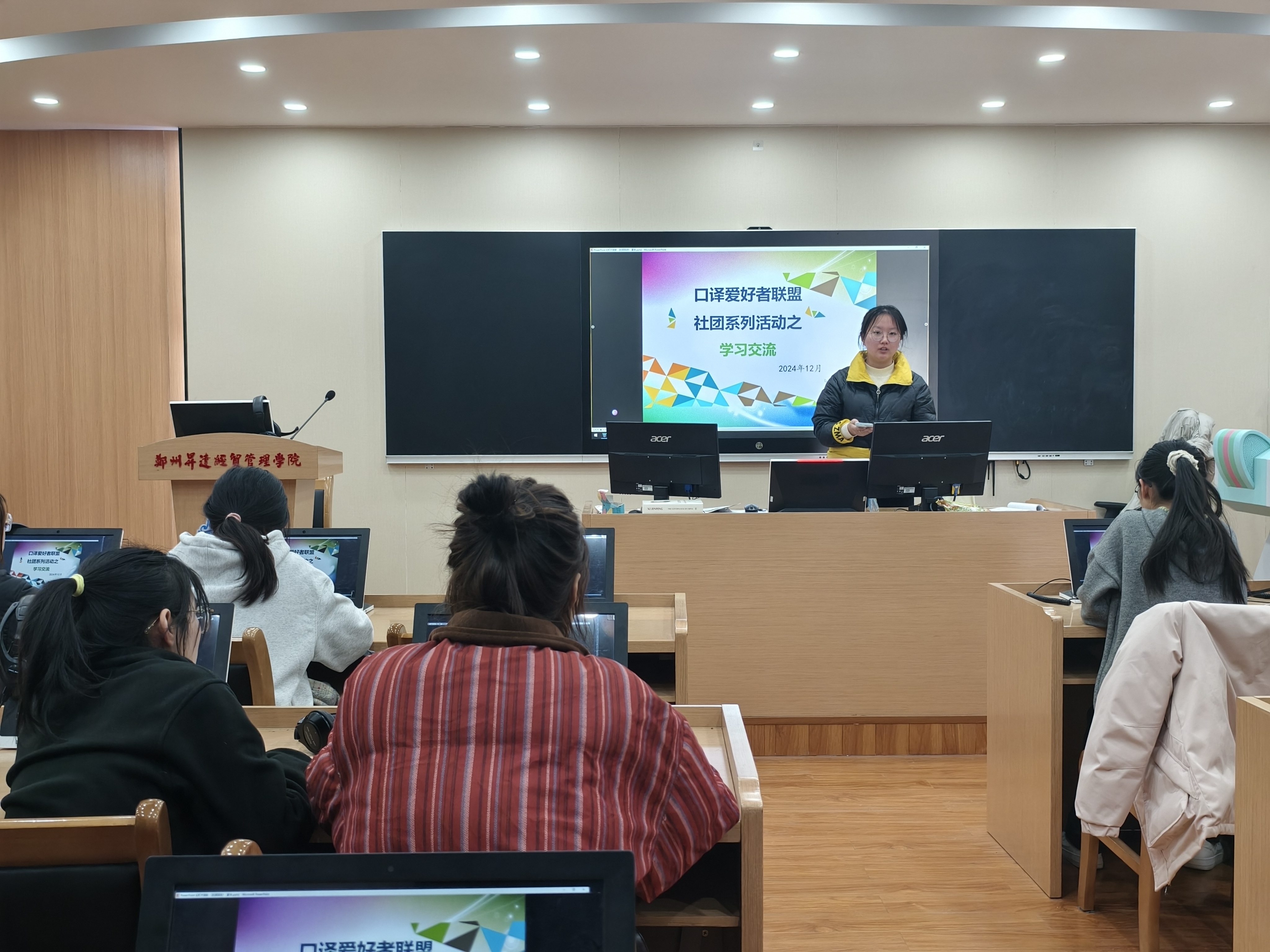 beats365唯一官方网站翻译专业社团口译爱好者联盟于2024年12月2日中午在综合实训大楼B座201举行学习交流会,社团指导老师孙燕冉及全体成员参加会议,讨论各学习小组关于China Daily精读学习的执行情况。