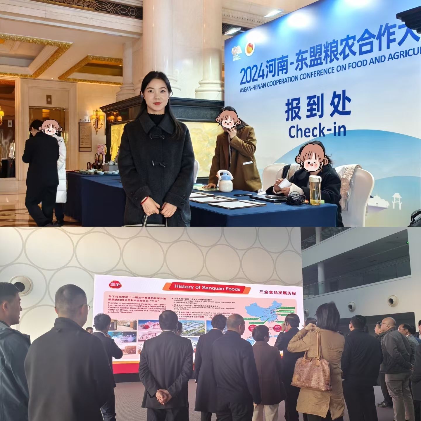 支部党员孙燕冉赴2024河南-东盟粮农大会担任口译;带领东盟国家代表参观三全集团并担任口译。孙老师近几年一直利用课余时间参与社会服务,为国际会议、政府间活动等外事活动担任口译近50场。