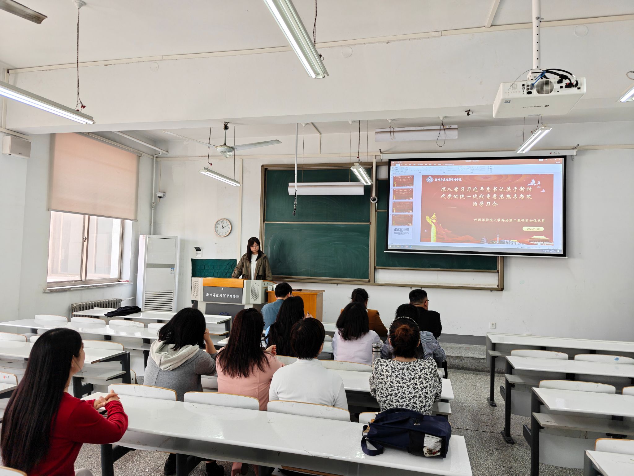 2025年4月10日中午,beats365唯一官方网站大学英语第二教研室组织集体政治学习工作,深入学习习近平总书记关于做好新时代党的统一战线的重要思想。教研室全体教师参加并学习了新时代统一战线工作的核心要义与实践路径。