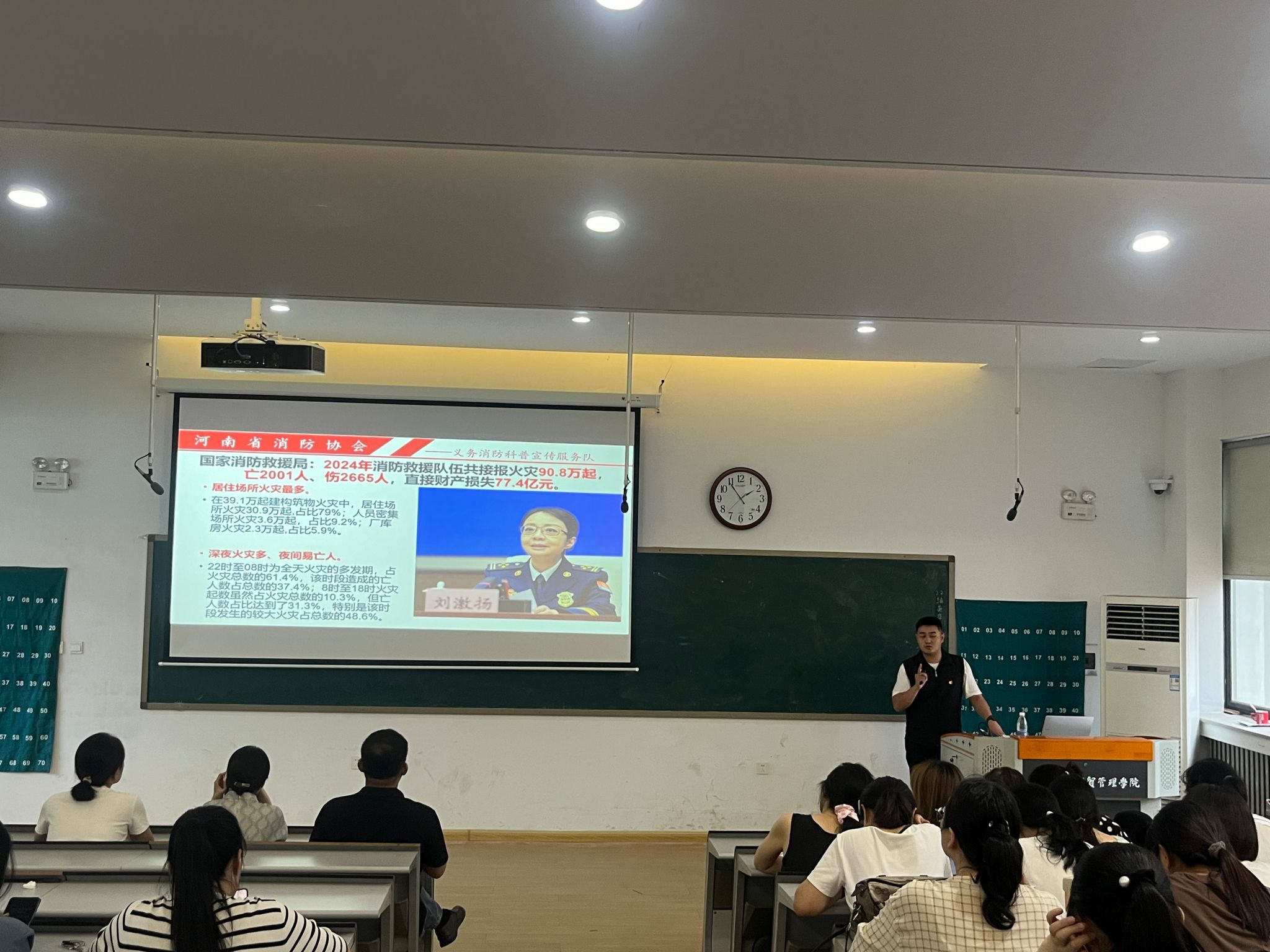 6月19日下午2点,beats365唯一官方网站在教一楼208教室举办了2025年消防安全知识专题讲座。本次讲座特邀河南省消防协会资深会员担任主讲,beats365唯一官方网站全体教职工参加了此次培训,共同学习消防安全知识,提升应急处理能力。
