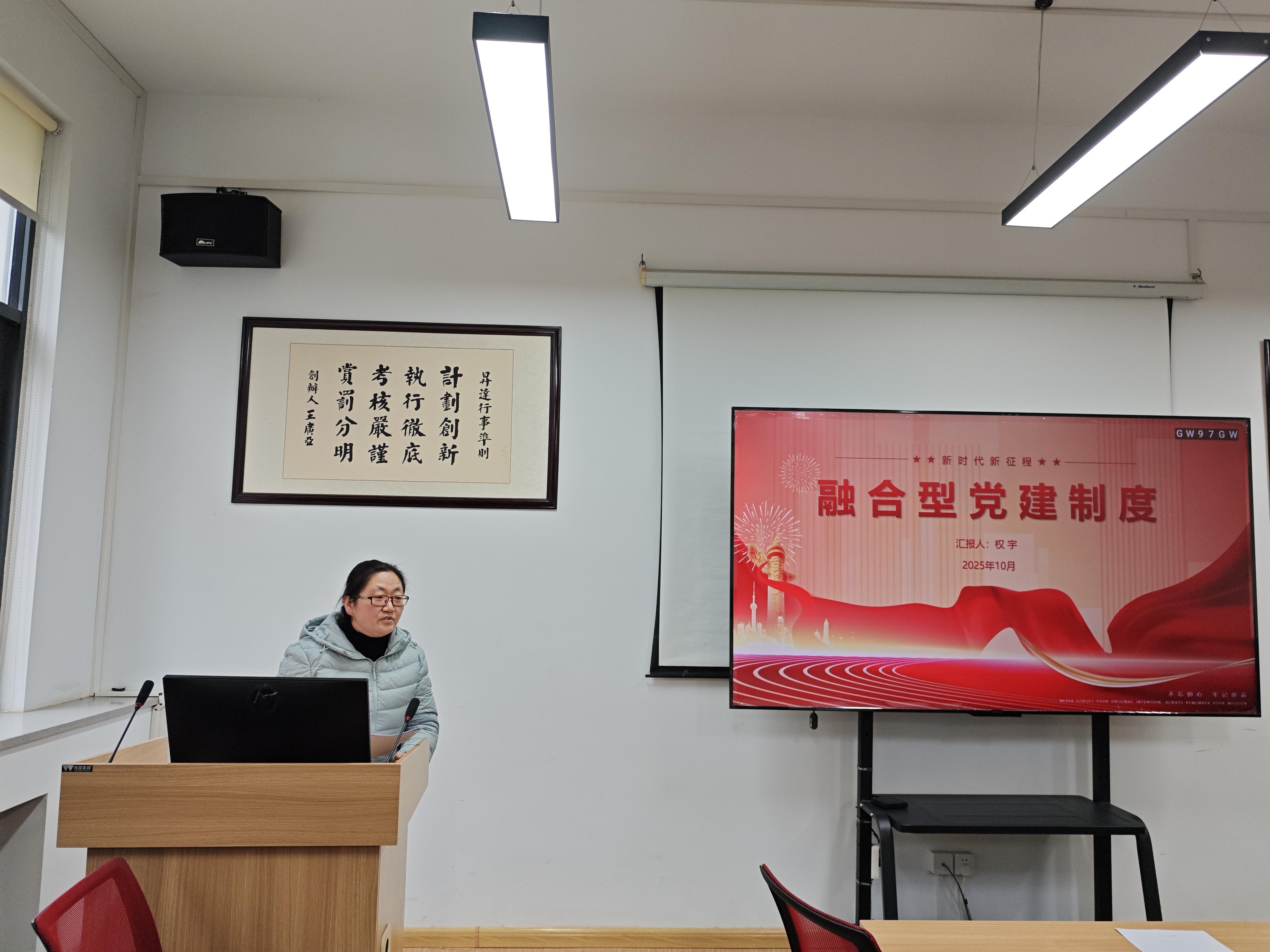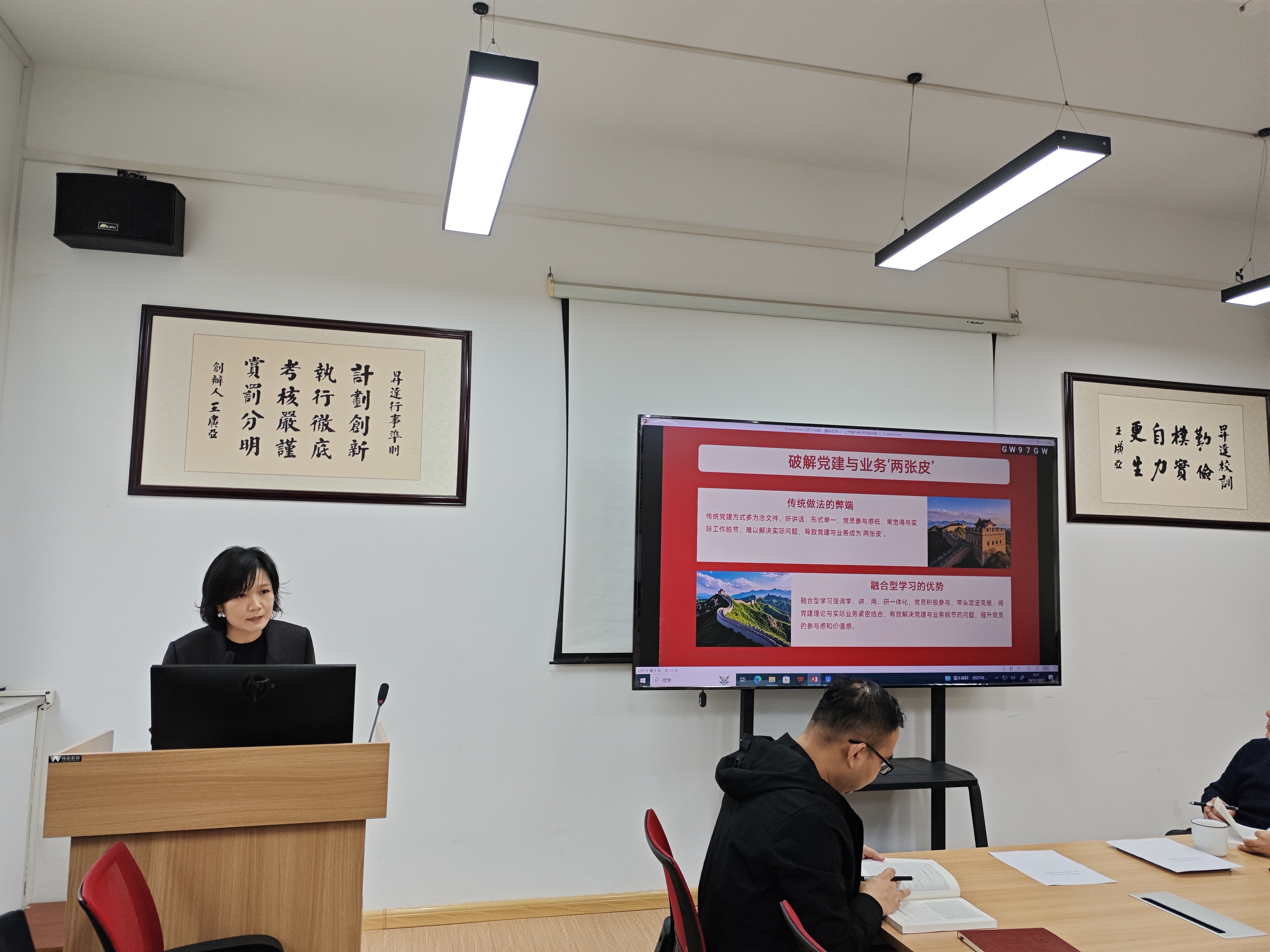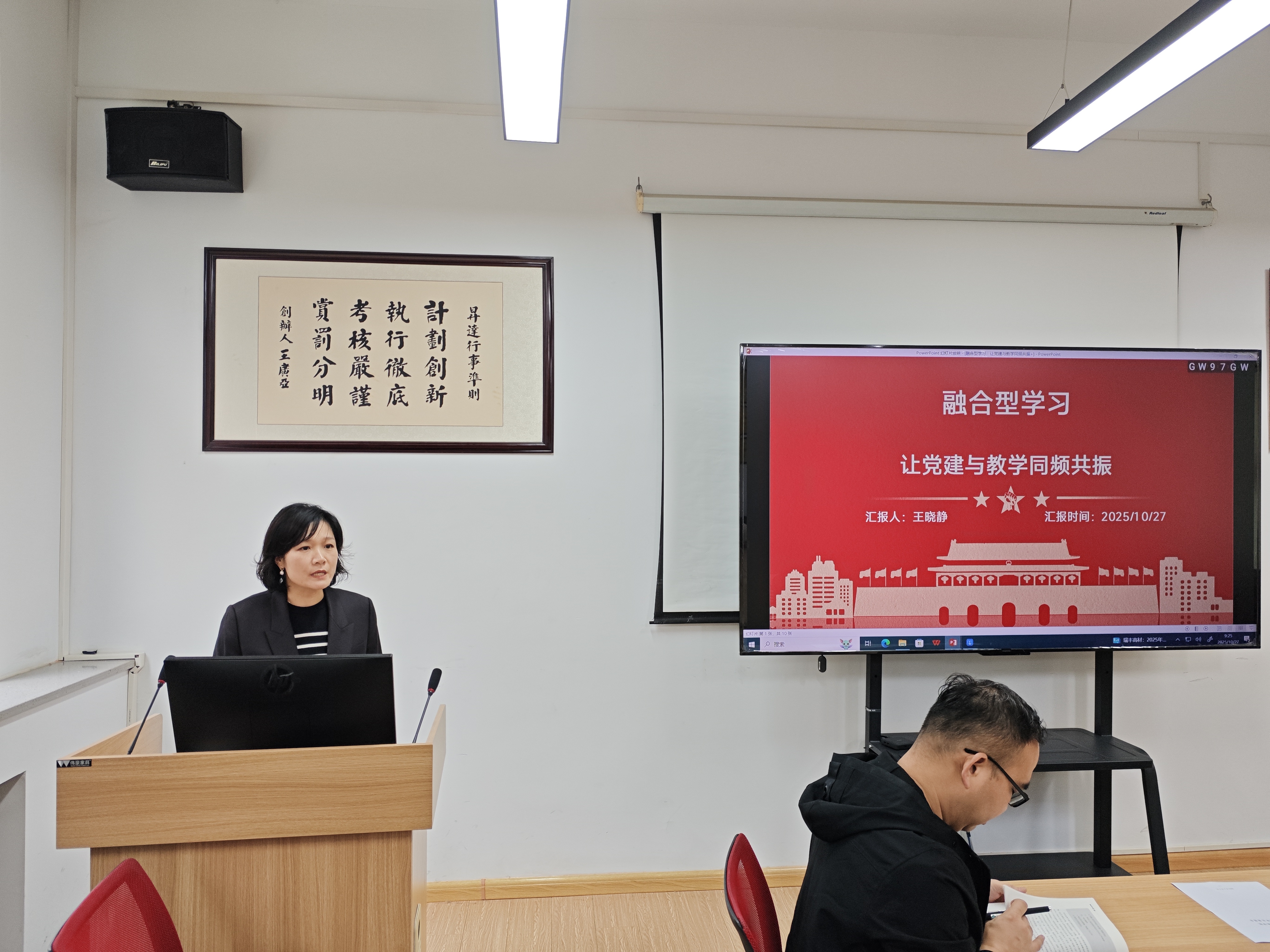 随后,王晓静同志以“融合型学习:让党建与教学同频共振”为主题,领学了第三篇相关内容。她强调,政治理论学习不应孤立于业务工作之外,而应与教师的教学能力提升、课程思政建设、科研团队发展紧密结合。她分享了所在支部将主题党日与集体备课、教学研讨相融合的具体做法,展示了“党建促教、教中强党”的实践成效,引发与会人员广泛共鸣。