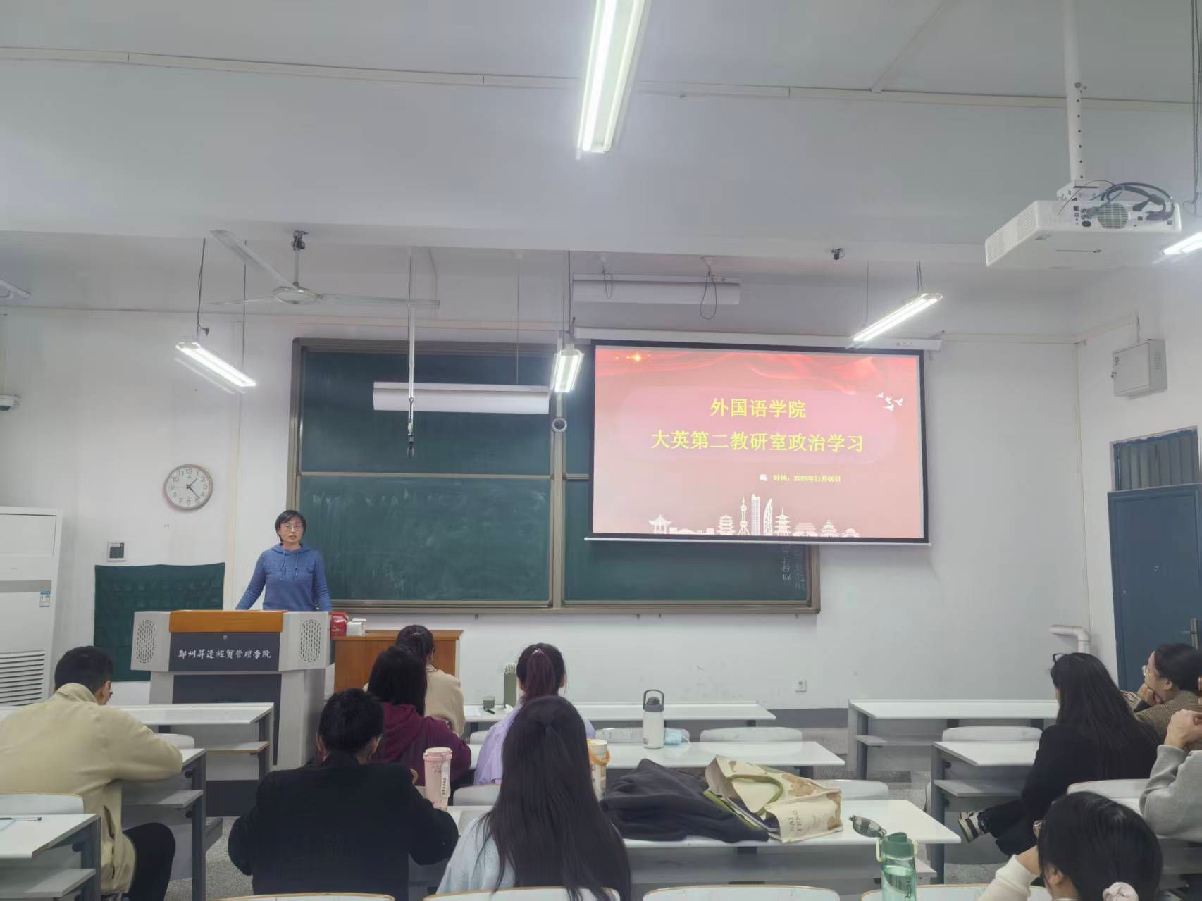 学习过程中,各教研室结合外语学科特点,重点探讨了如何将党的二十届四中全会精神以及党的创新理论有机融入专业课程教学之中,特别是在翻译、语言文化、跨文化传播等课程中讲好中国故事、传播好中国声音的有效路径。大家纷纷表示,将进一步增强责任感和使命感,把学习成果转化为讲好中国故事、培养时代新人的实际行动。