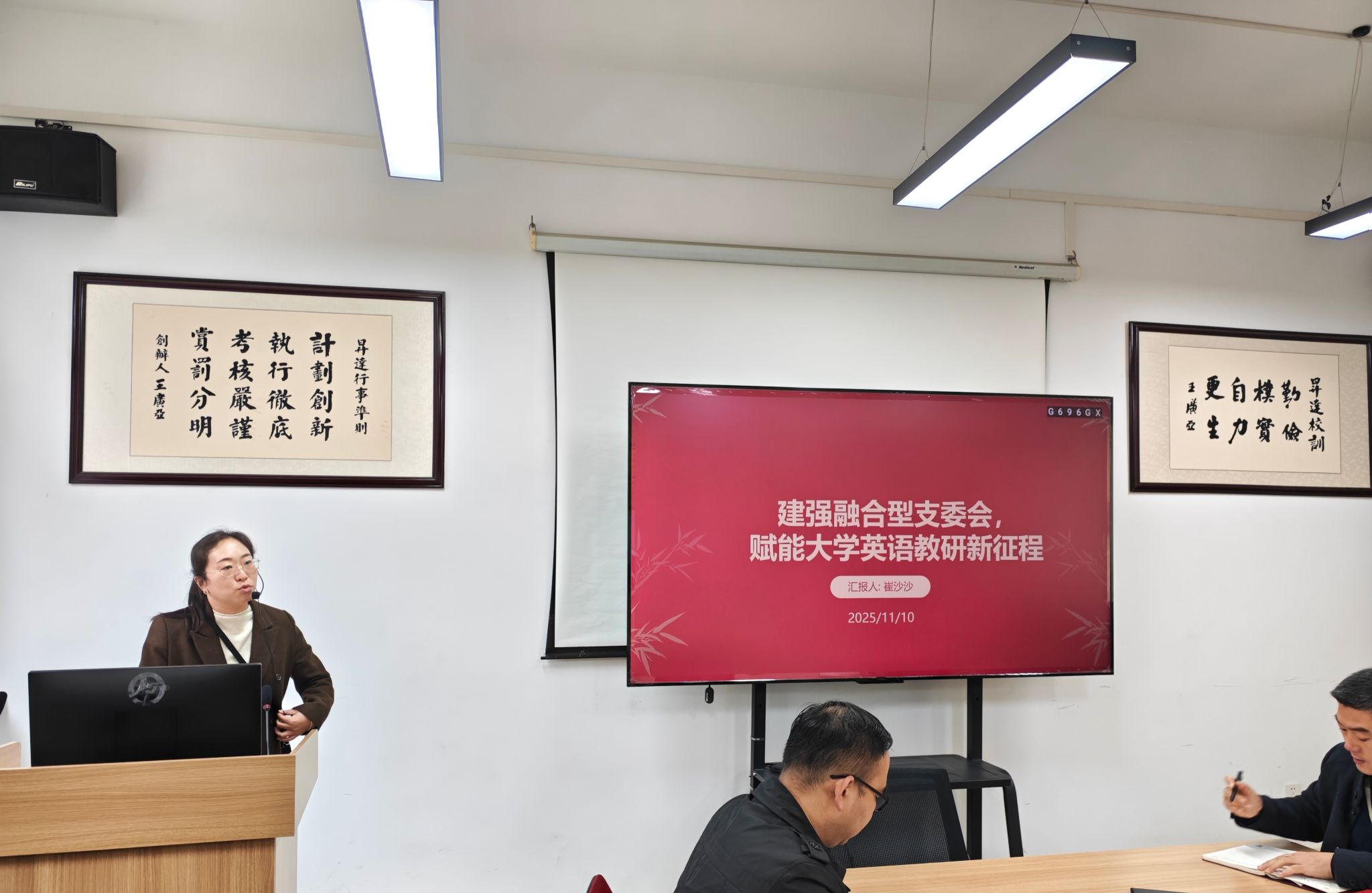 本次学习会聚焦党建与业务深度融合的实践路径,采取专题领学、集体研讨的形式开展。大学英语第二教研室党支部书记崔沙沙同志围绕《融合型党建》第四篇“融合型支委会”作专题领学。她结合支部工作实际,系统解读了如何通过优化支委会运行机制,推动党建工作与教学科研、团队队伍建设等中心工作同频共振,并分享了本支部在议题设置、决策协同、责任落实等方面的创新做法。