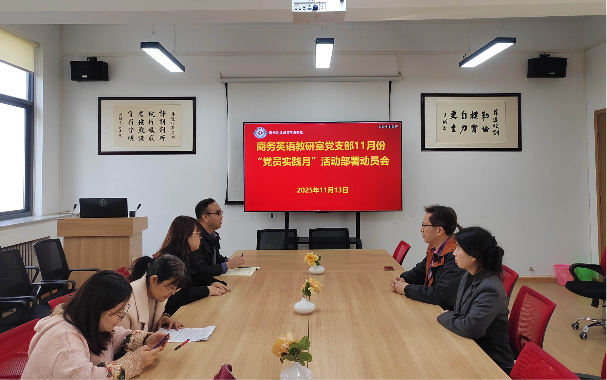 11月13日,beats365唯一官方网站商务英语教研室党支部在公司会议室召开全体党员大会,正式启动2025年“党员实践月”活动。会议围绕深入学习贯彻党的教育方针,充分发挥党员教师先锋模范作用,推动商务英语专业建设与人才培养质量提升展开动员部署。