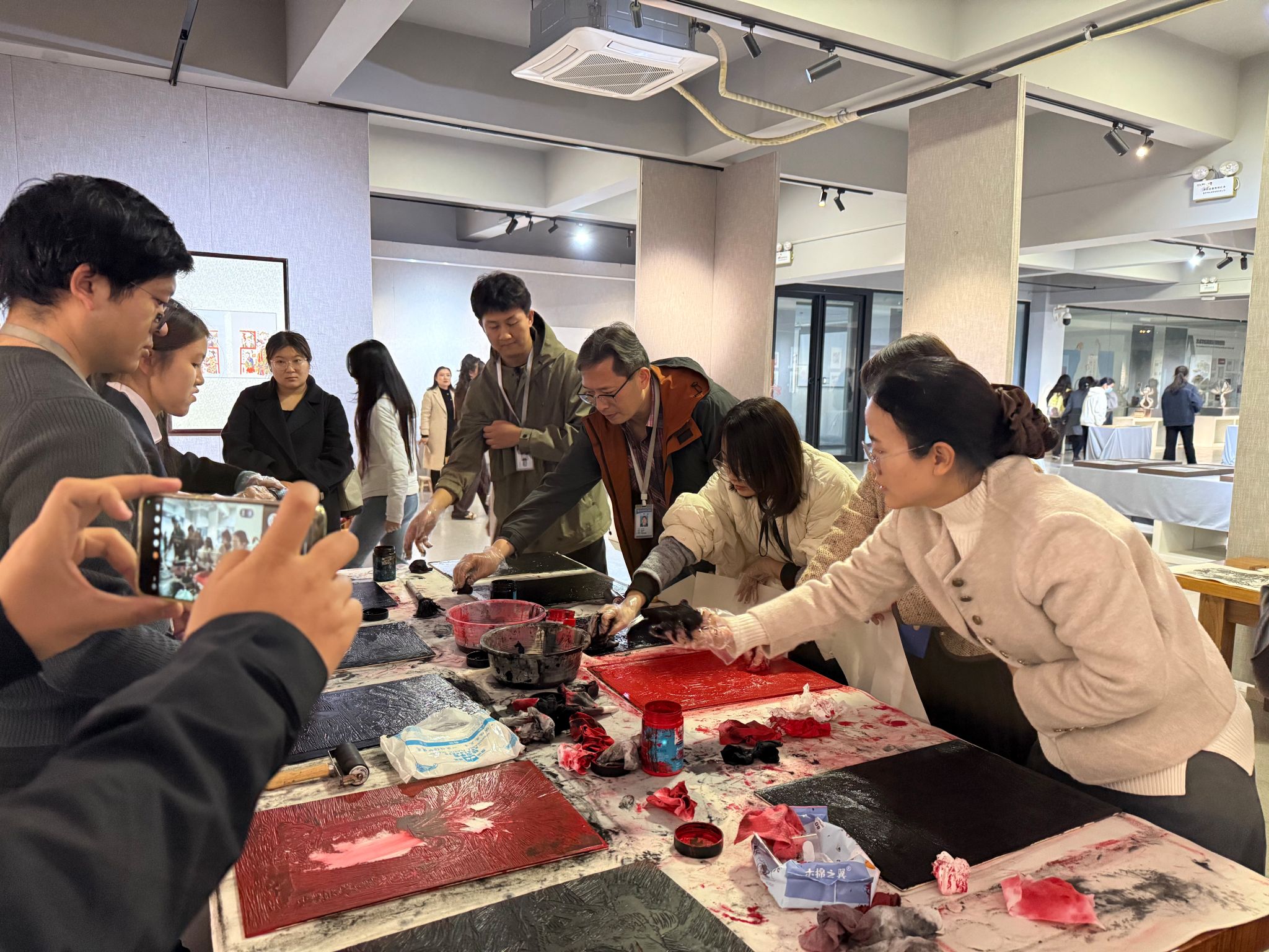 活动特别设置的“版画体验”环节将现场气氛推向高潮。在专业指导下,师生积极参与动手实践,亲手印制具有民族文化元素的版画作品,在沉浸式体验中感受中华优秀传统文化的魅力,进一步增强了文化认同与家国情怀。