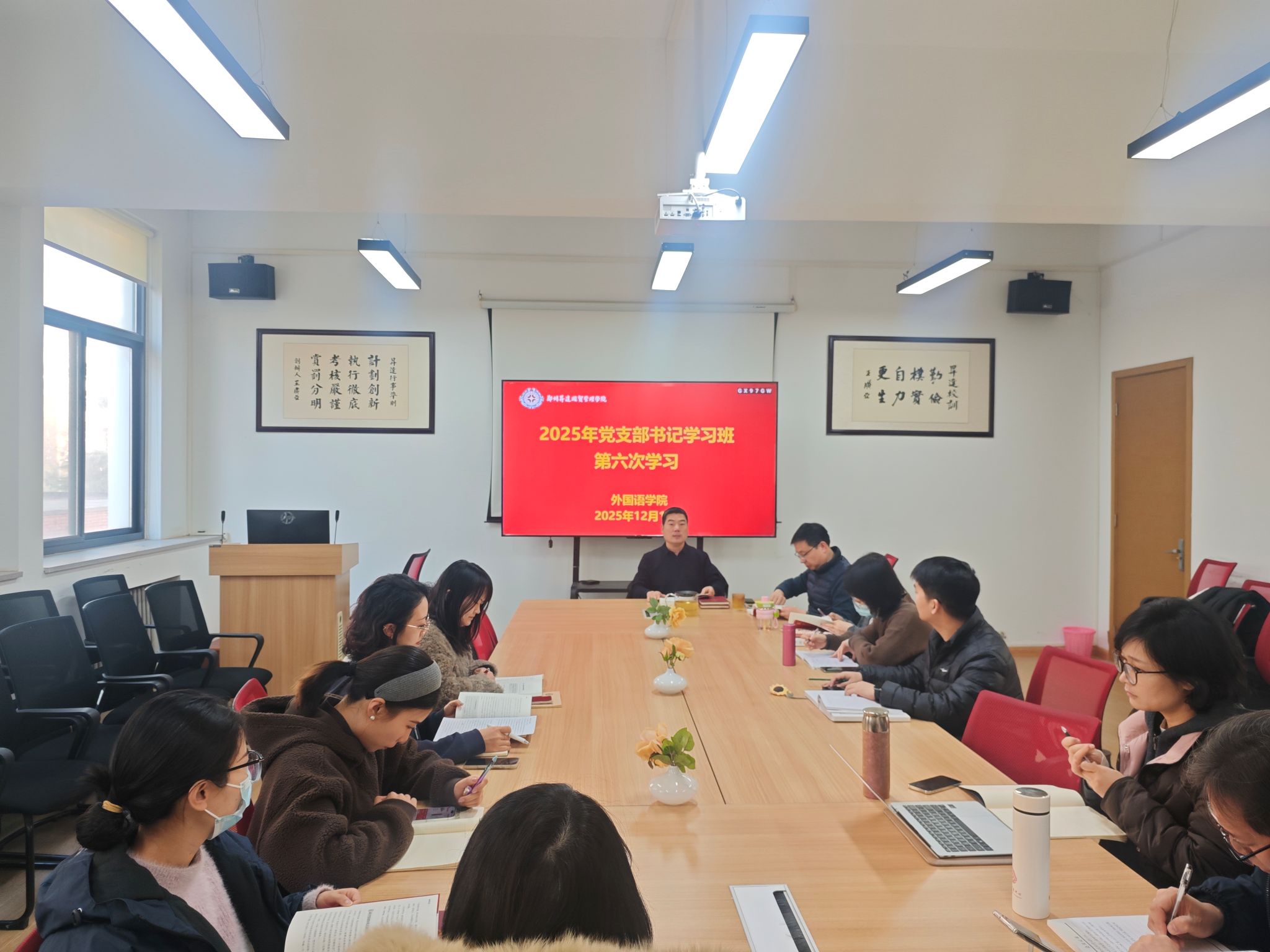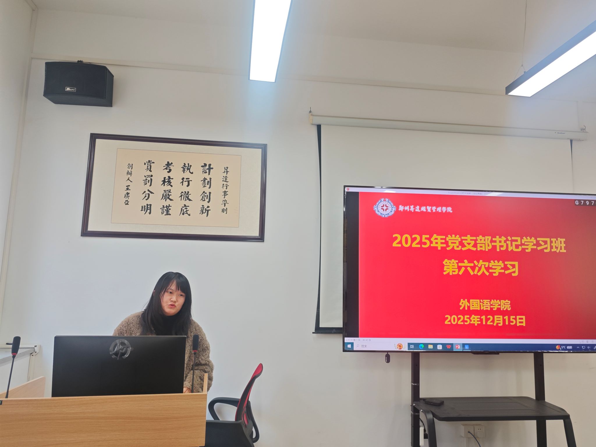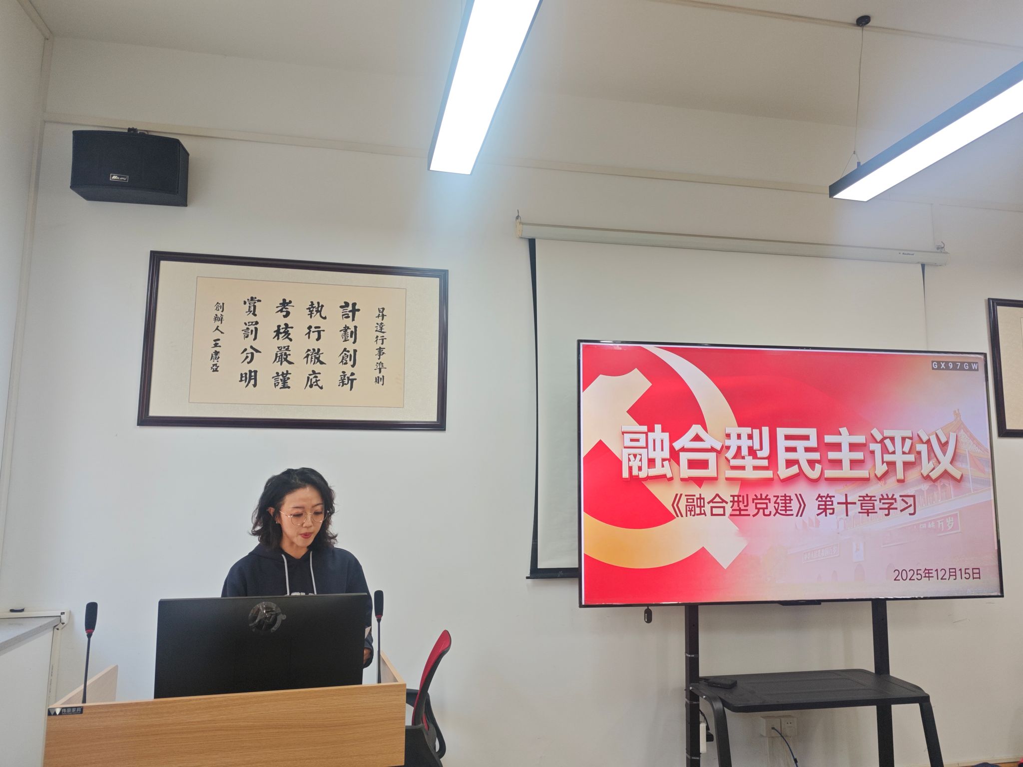 在专题学习环节,英语专业员工第一党支部书记武珍毅同志领学《融合型党建》第十篇“融合型民主评议”,结合员工党员特点,介绍了将民主评议与日常表现、学业发展、服务实践相融合的有效路径。英语专业员工第二党支部书记赵志海同志领学第十一篇“融合型主题党日”,分享了主题党日活动融入专业特色、贴近员工需求的具体做法与实践经验。