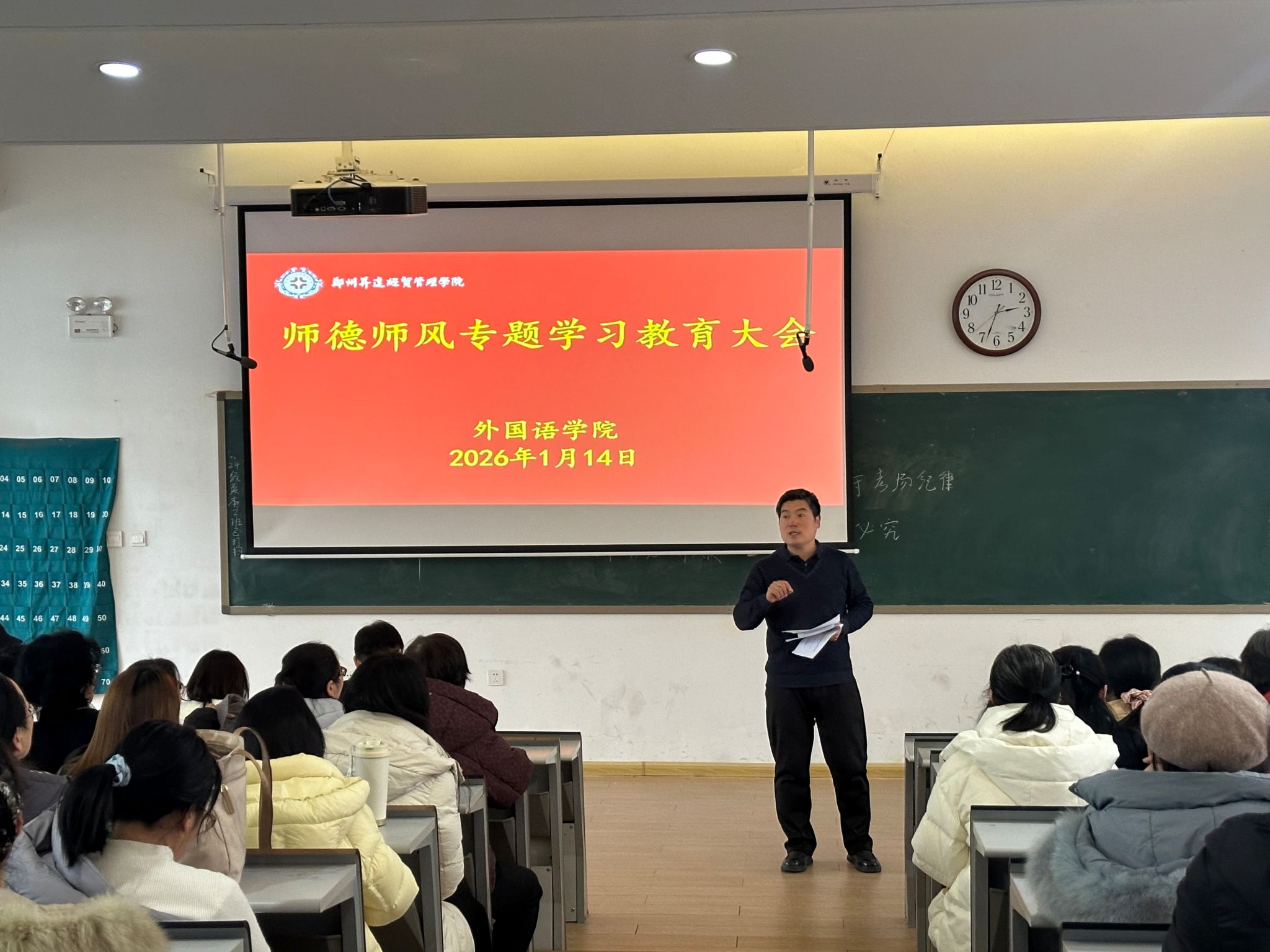 2026年1月14日下午,beats365唯一官方网站在1-208阶梯教室召开全院师德师风专题学习教育大会。会议由公司党委书记石皓召主持,全体教职工参加。
